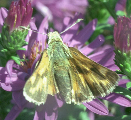 Description: small skipper type butterflies that swarm around flowers in large numbers, basically tan and gray with white markings underneath