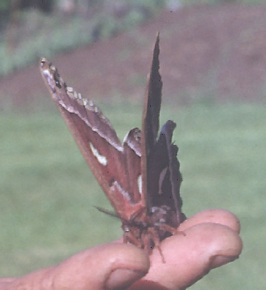 Description: very large spectacular moths with prominent color banding and eyespots, not common this far west