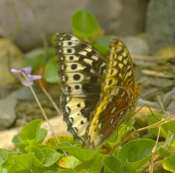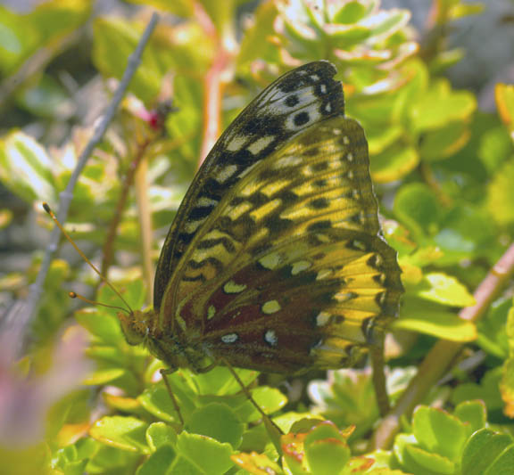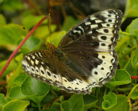 Description: an active butterfly that tends to spend a lot of time hidden deep in shrubs, brownish with white markings